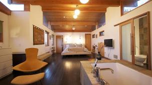 Комната с приятными оттенками синего и красивая ванная комната помогут Вам расслабиться после трудового дня...